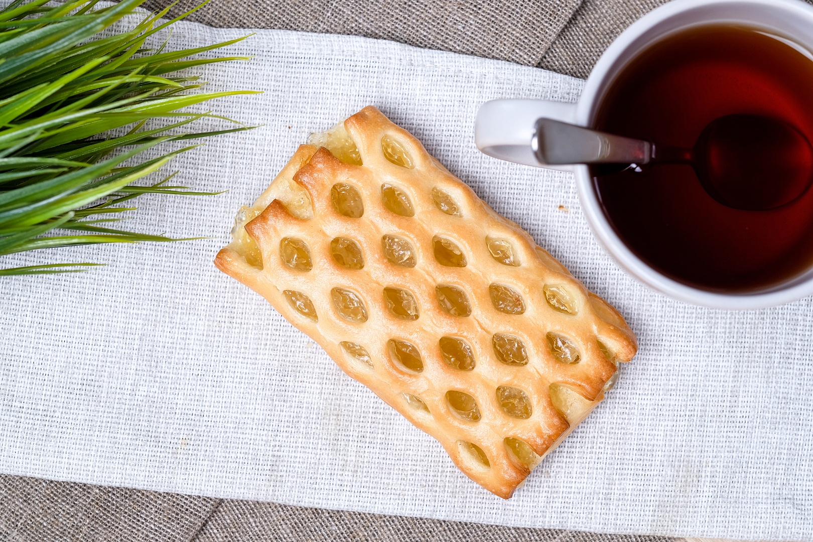 Состав: мука пшеничная в/с, вода, конфитюр, маргарин для слоеного теста, сахар, дрожжи хлебопекарные прессованные, соль Вес: 0,07 кг Срок хранения: 7 суток.