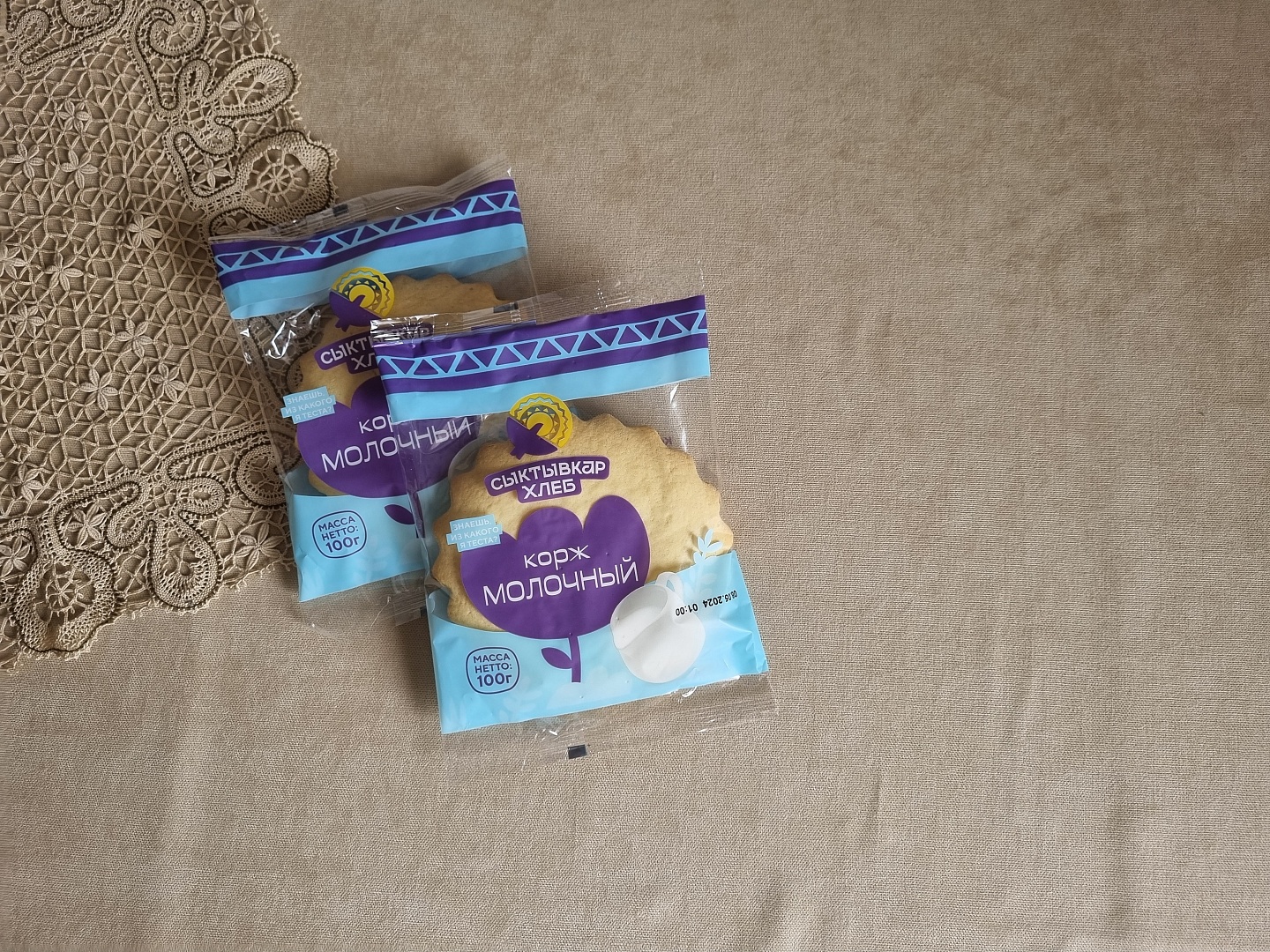 Корж печется из песочного теста по рецептуре 1977 года. Состав: мука пшеничная в/с, сахар, вода, маргарин, соль, ароматизатор, молоко сухое цельное, яичные продукты Вес: 0,1 кг Срок хранения: 10 суток.