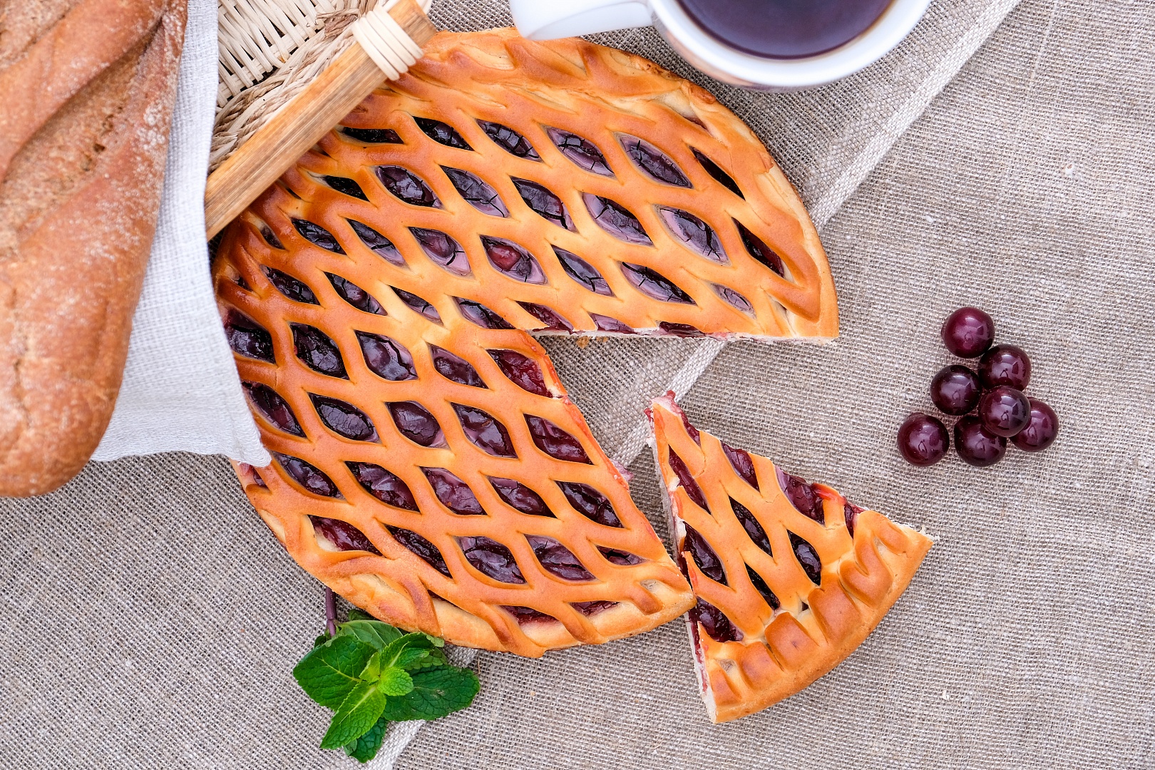 Пирог из сдобного сладкого теста с большим количеством кисло-сладкой вишневой начинки. Просто тает во рту! Вес:0,35 кг Срок годности:5 суток