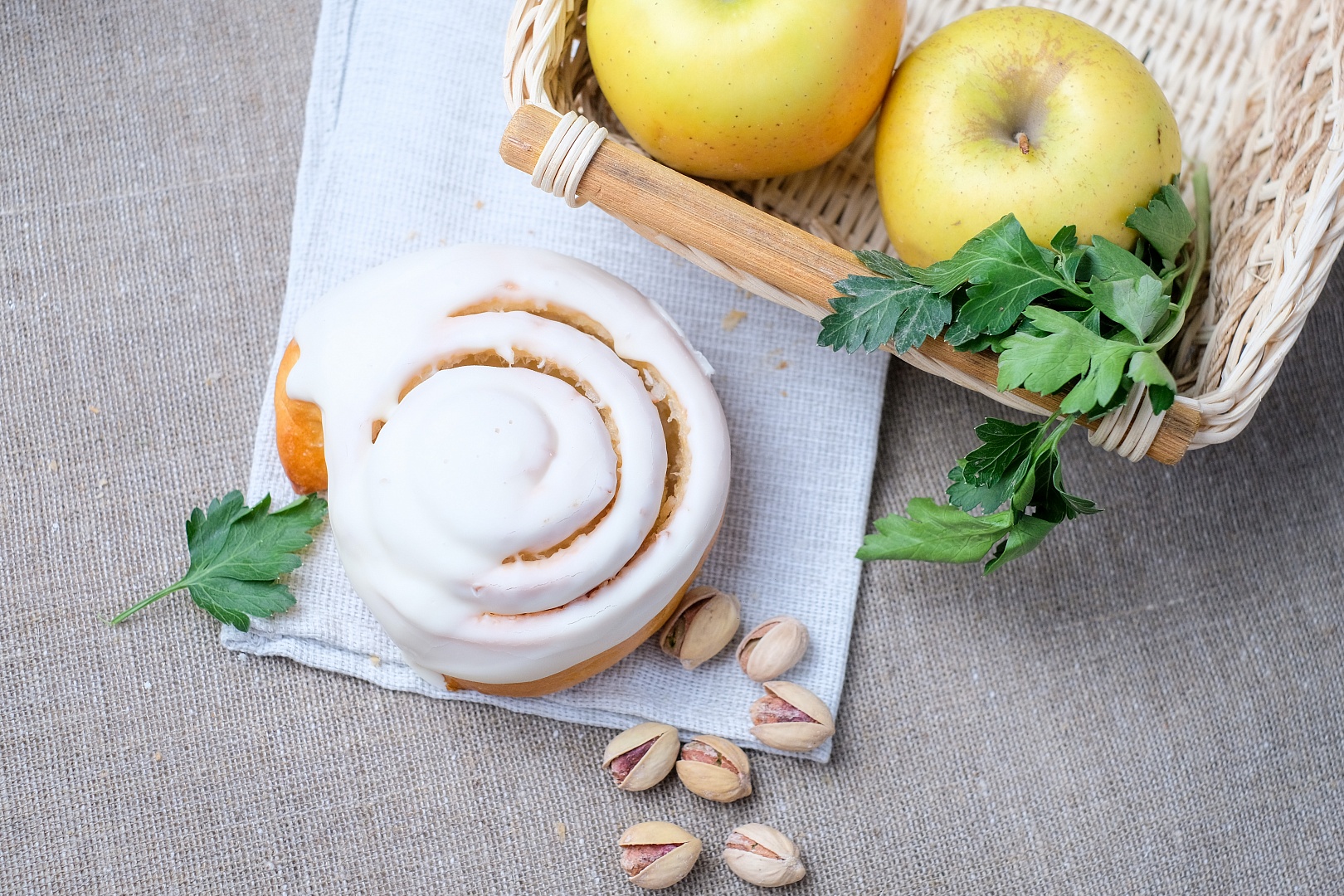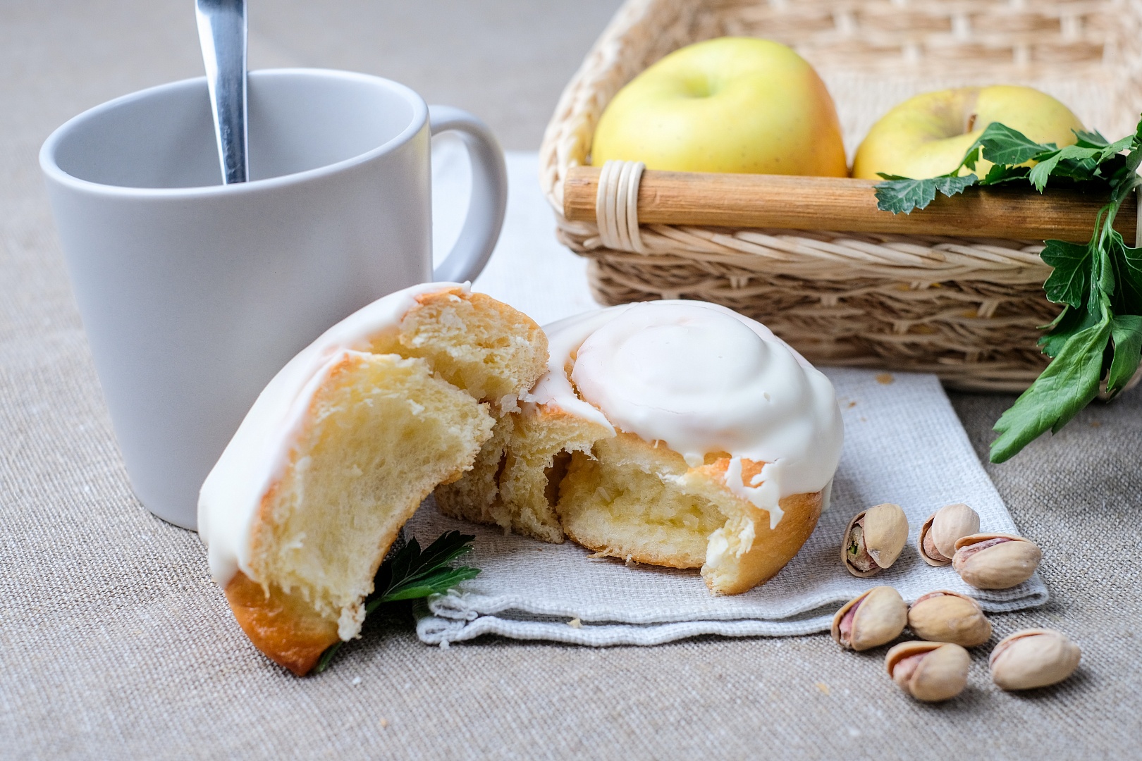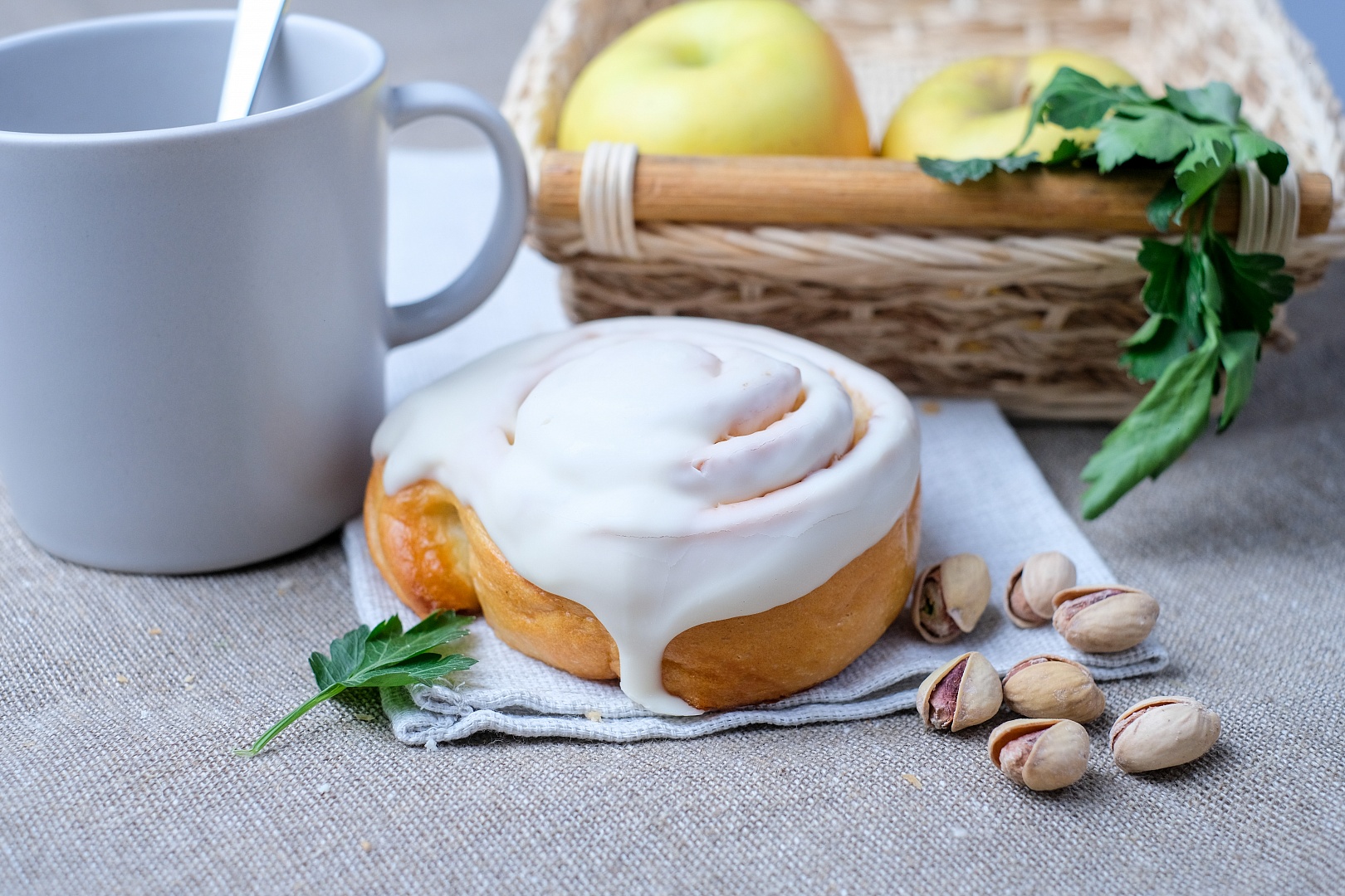Сдобная булочка из муки высшего сорта с корицей, покрытая белой глазурью. Вес: 0,08 кг Срок хранения: 5 суток