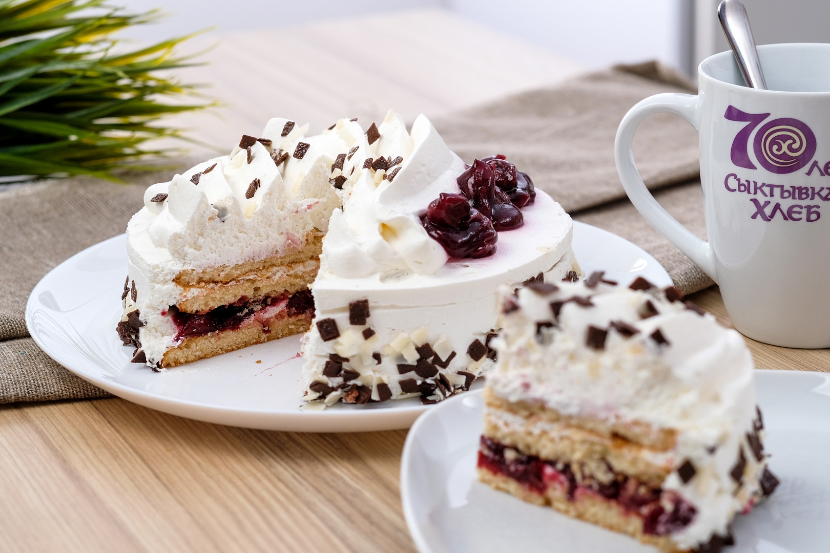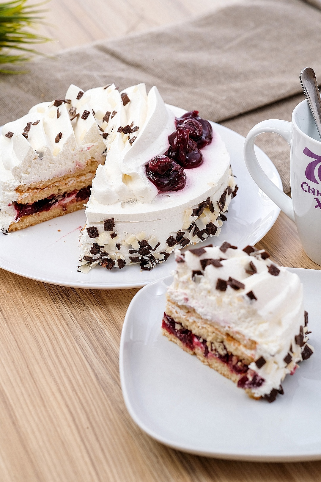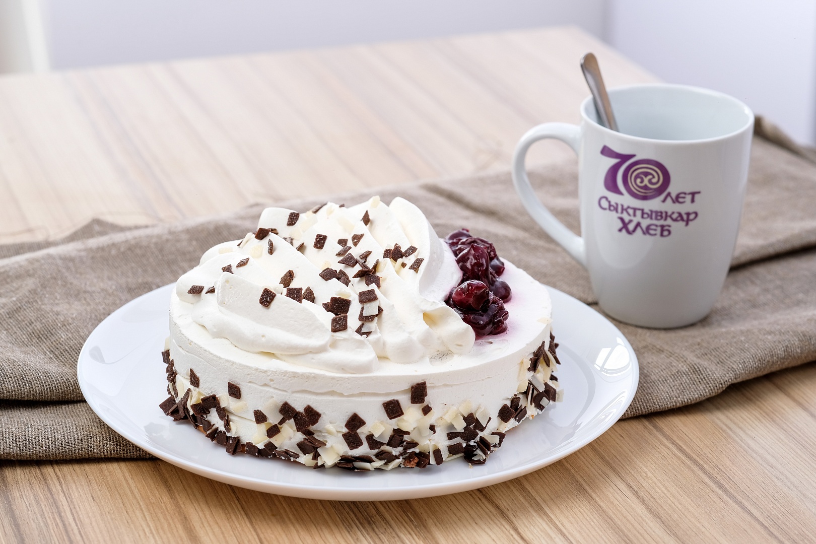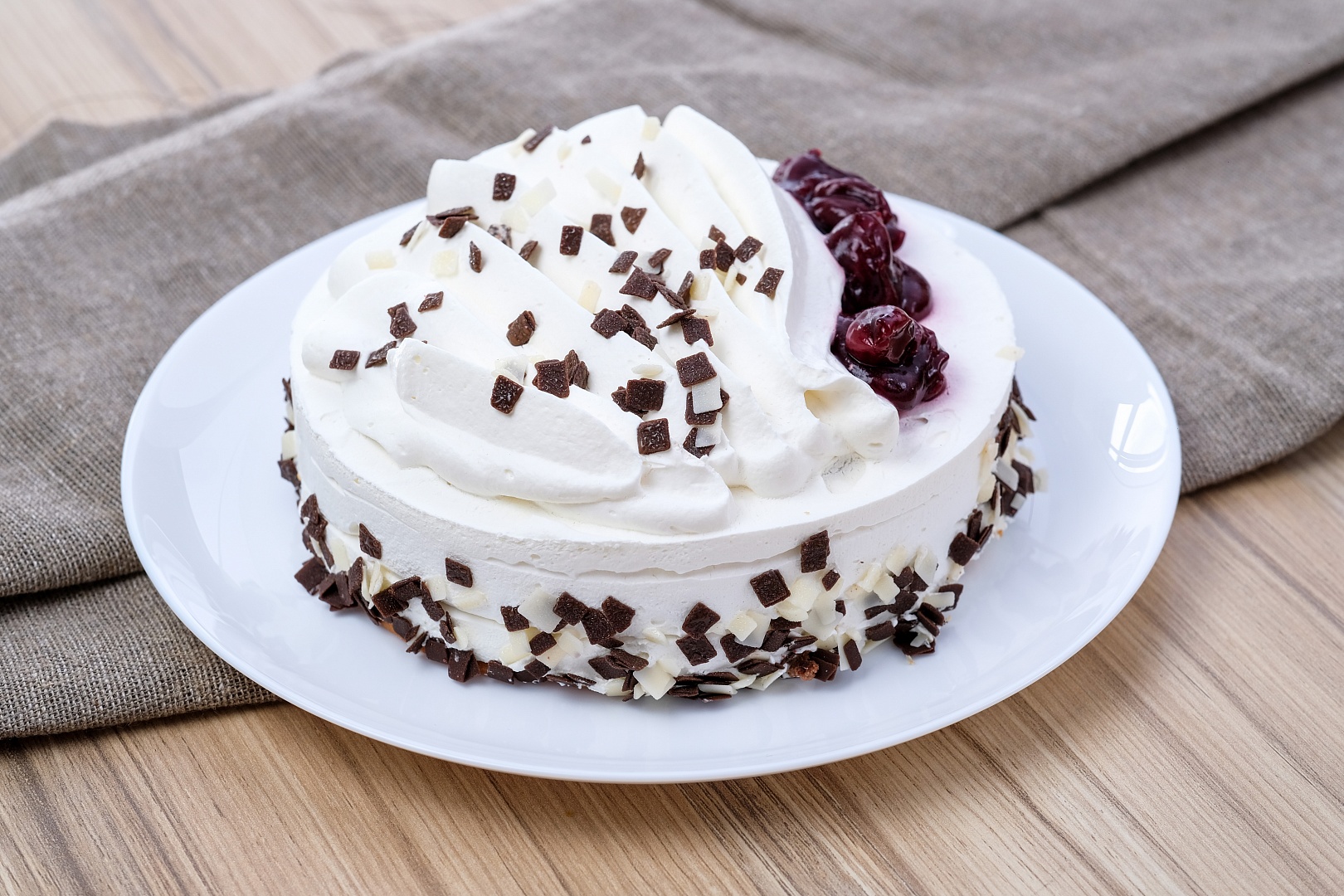 Слои масляного бисквита, между которыми нежный сметанный крем и вишневая прослойка, словно укутаны облаком из сметанного крема. Вес: 0, 6 кг Срок хранения: 120 часов